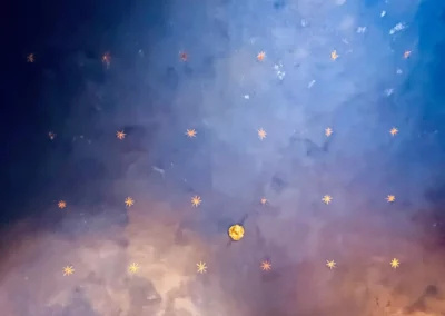 Nous vous présentons une fresque représentant un ciel constellé.